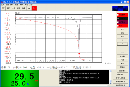 方案成熟,過程注意實驗用氫氧化鈉標準溶液配制好后需標定濃度。此化學(xué)反應(yīng)突躍明顯,但需設(shè)置在“中”mV量在100~150mV之間。